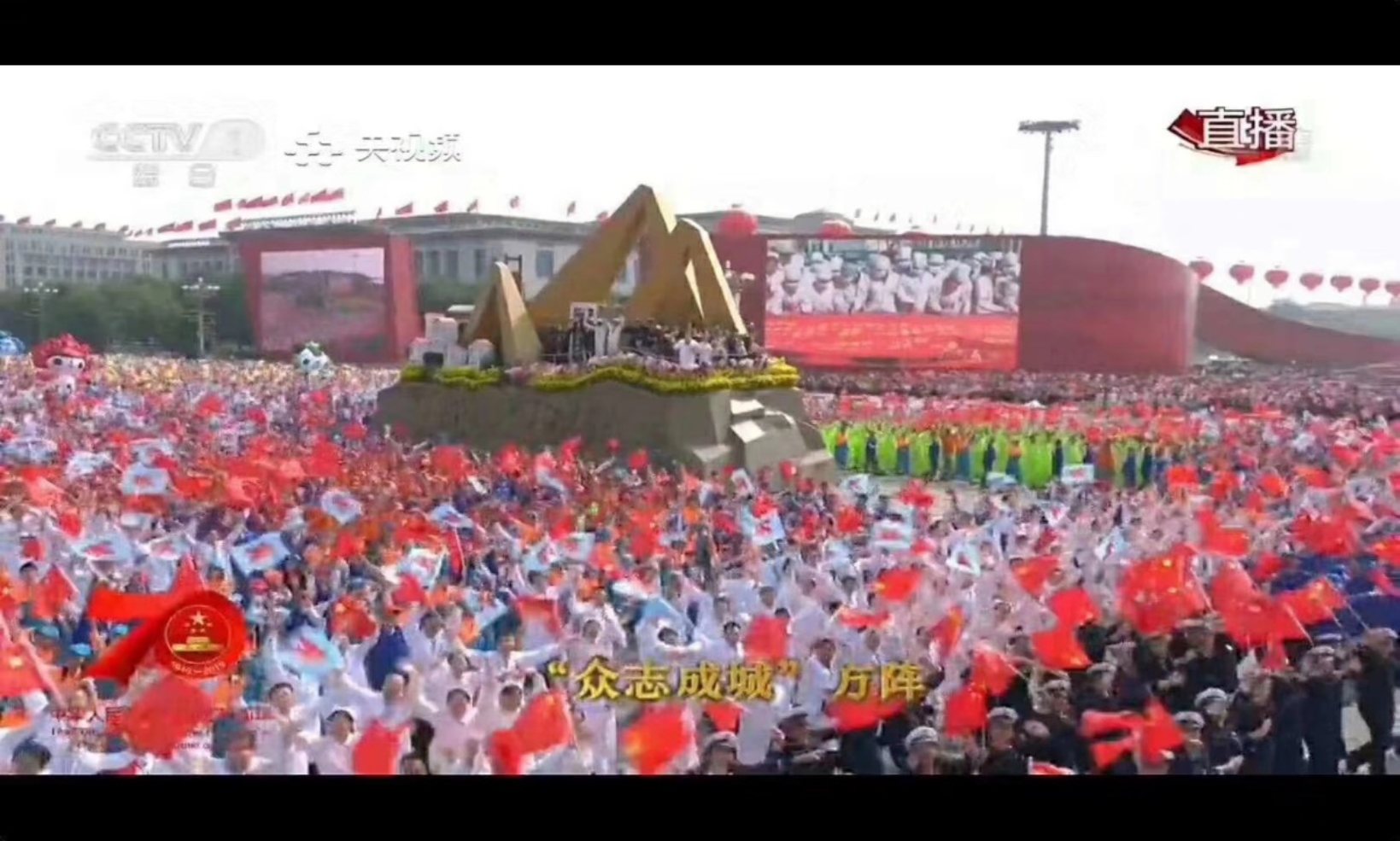 回首整个夏天,难忘而充实。从7月16日开始的军训、演练,同学们顶着烈日、冒着大雨,一遍遍踏着《江山》铿锵的音乐,学习动作、训练表情、熟悉口号,训练是艰苦的,取得的成绩是优异的。在海淀区、北京市指挥部开展的训练验收和在天安门广场的三次彩排,均受到了充分表扬。集结、行进、口号、动作、表情、疏散,一气呵成!今天的表现更是完美无缺!