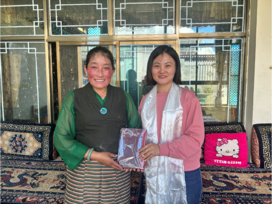 ▲博士生王漫玉访谈桑珠孜区江当乡郭加新村脱贫户顿珠