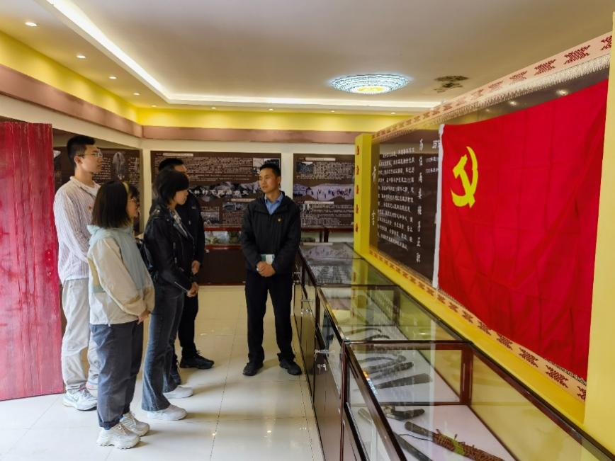 5月26日,新葡京官网 师生调研团与西藏林芝市墨脱县乡村振兴局领导、背崩乡格林村“两委”班子成员在村史馆开展联学践学活动。驻村第一书记黄家斌介绍,作为边境乡村,格林村长期以来为藏地边境稳定安宁作出了卓越贡献。1950年大地震后,村中仅剩四户人家。在党中央和自治区党委的关怀与支持下,村民们团结一心、艰苦奋斗,恢复重建新家园。近年来,格林村以军地共建为抓手,融通军地资源,发挥比较优势,大力推进乡村振兴,深入实施“四红”工程,持续推动格林村建设取得新成效、展现新面貌。