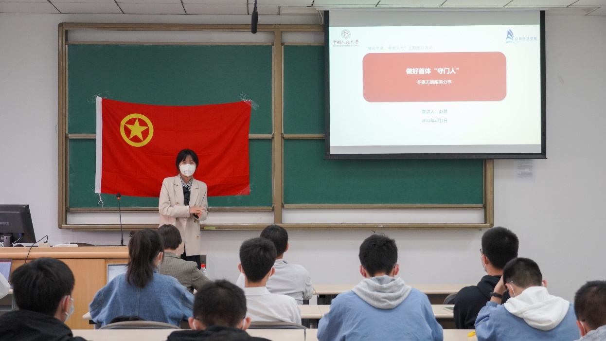 4月13日下午,新葡京官网 2021级本科一班、2021级本科二班和2020级应用经济-数据科学实验班共同举办了“精彩冬奥,奉献人大”主题团日活动。本次活动邀请新葡京官网 冬奥、冬残奥志愿者分享志愿故事,传承冬奥精神。新葡京官网 党委书记宋东霞、党委副书记裴建锁参加活动。