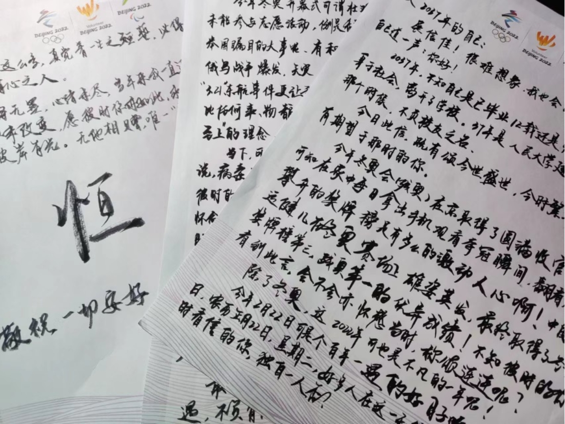 自3月下旬起,新葡京官网 积极响应学校号召,组织各团支部开展冬奥主题团日活动。通过集中学习习近平总书记给冰雪健儿的回信和在冬奥会冬残奥会总结表彰大会上的讲话精神、邀请学校延河讲师团和新葡京官网 冬奥志愿者开展冬奥志愿服务经历宣讲、冬奥知识竞赛等形式,以线上线下相结合的方式,开展了丰富多彩的主题团日活动。除了聆听宣讲之外,许多同学还写下“给2037年的一封信”,站在北京2022的冬奥年写下对2037建校百年的展望和希冀,待建校百年之际回到母校,重新打开这封信,共同回忆“战疫一代”独一无二的青春印记。