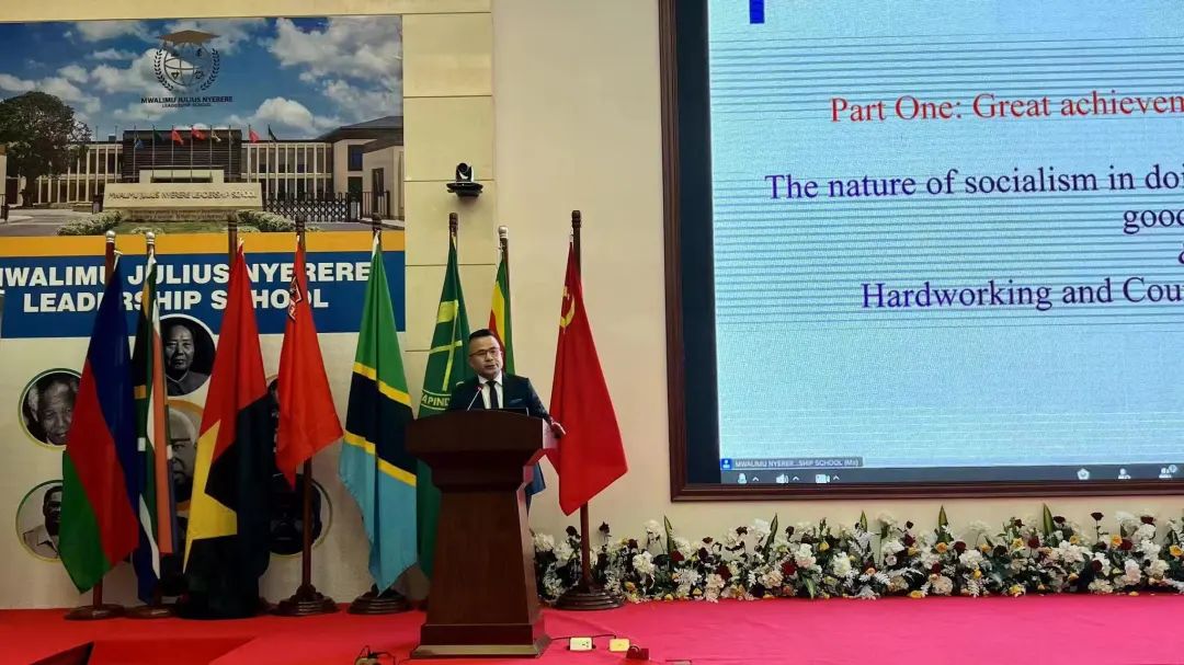 ▲在坦桑尼亚,“832工程”团队郑新业教授为尼雷尔领导力新葡京官网 2023年南部非洲六姊妹党中青年干部研修班讲授中国减贫经验