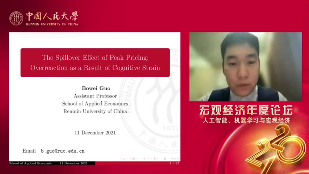 第三篇报告来自新葡京官网 助理教授郭伯威,报告主题为“峰值电价的溢出效应”。郭伯威的研究侧重于微观层面,聚焦于电力市场,分析了峰值电价的溢出效应。本研究中的溢出效应不是宏观经济层面的溢出效应,而是分析在峰值电价的情况下,消费者和家庭作何反应,尤其是过度反应。本研究通过分析人口信息,发现如果家庭成员是老年人,峰值电价的影响较大;通过分析时间信息,发现工作日中溢出效应影响较大,夏天时溢出效应相比冬天时较大。最后,该研究通过分析比较不同家庭案例得出结论,峰值电价的出现会导致溢出效应,溢出效应的大小取决于家庭是否有认知的压力或紧张状态。