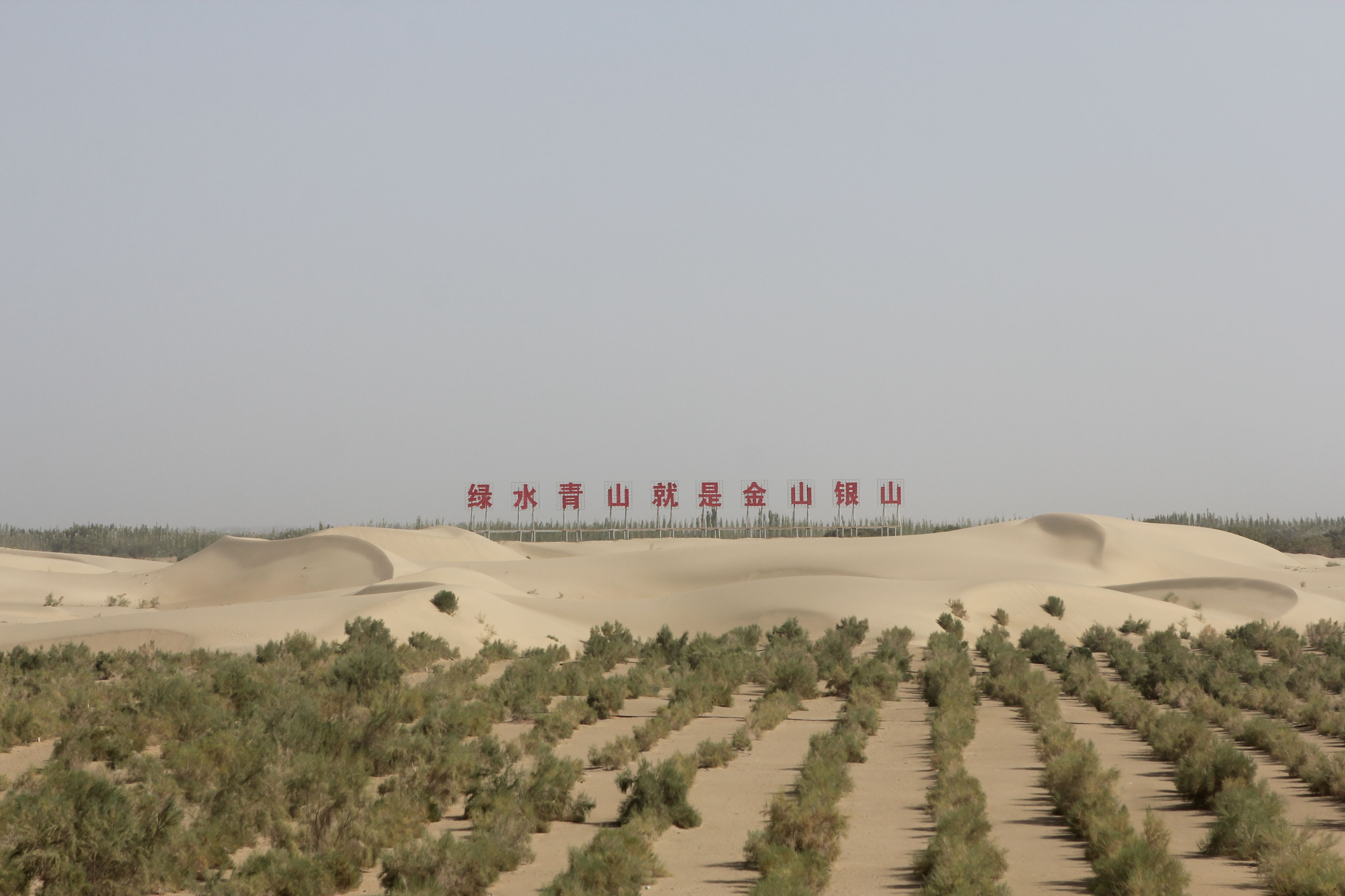 麦盖提县是全国唯一嵌入沙漠的县城。麦盖提县地处塔克拉玛干沙漠西南边缘,三面环沙,县城距沙漠直线距离只有5公里,沙漠面积占全县总面积的90%,干旱大陆性气候特征极其明显,年均降水量56.5毫米、蒸发量2001.8毫米,生态环境十分脆弱,沙尘灾害频发,平均每年的沙尘天气达到150余天,严重制约县城经济持续健康发展。为了改善县域生态环境,麦盖提县在完成50万亩水资源平衡论证的基础上,决定大力实施百万亩防风固沙生态林工程,在塔克拉玛干沙漠边缘构筑起一道大型生态屏障。