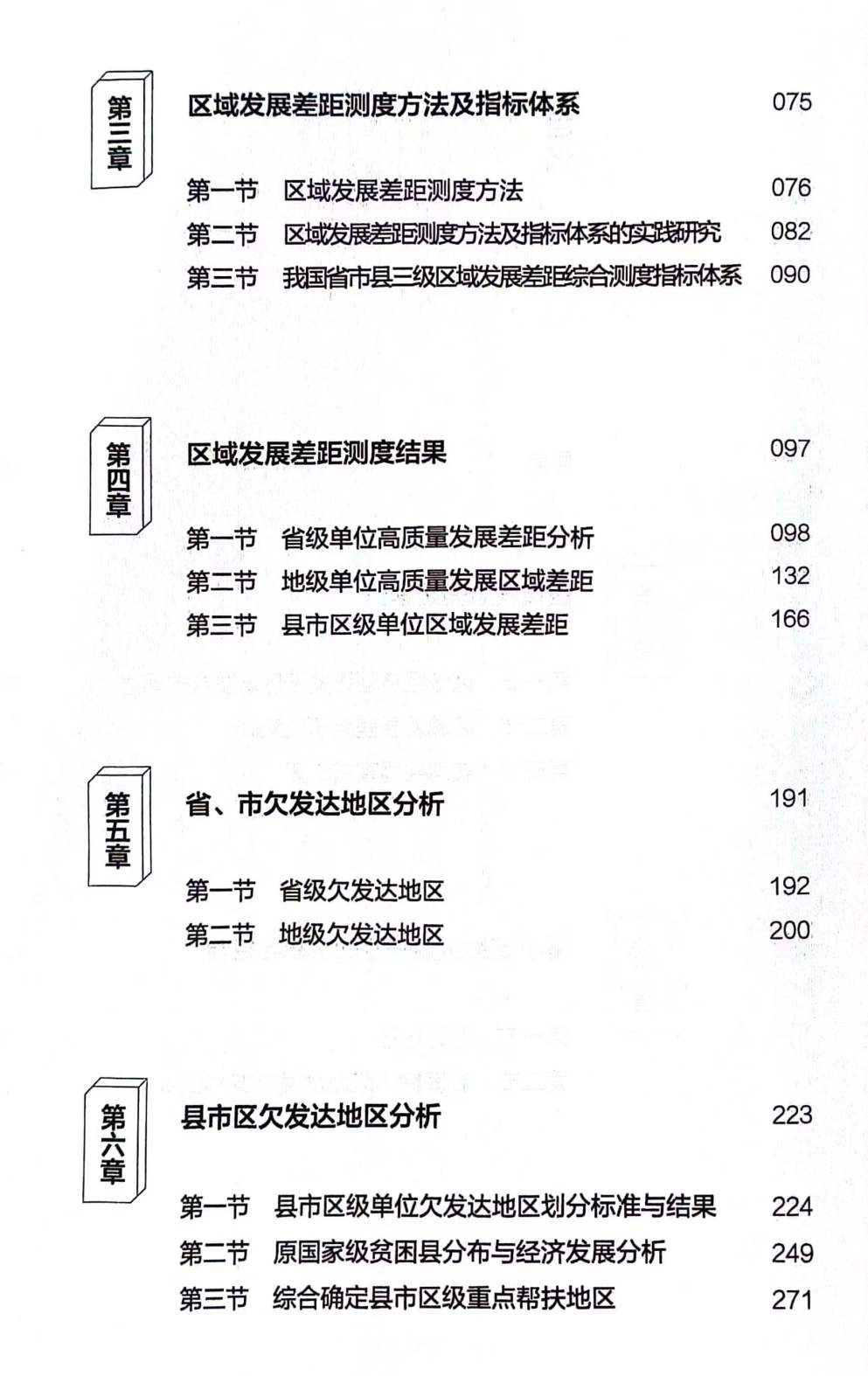 共同富裕是社会主义的本质要求,是中国式现代化的重要特征。党的十八大以来,逐步实现全体人民共同富裕被摆在更加重要的位置。在此背景下,亟须加强对共同富裕的多角度研究。本书认为,共同富裕在空间上表现为人口聚集区的共同富裕。要实现这一点,根本途径是促进欠发达地区的发展,缩小区域差距。而缩小区域差距的前提是明确欠发达地区的分布和区域差距的现状。基于此,本书在对区域差距相关理论、测度方法、经验研究的基础上,分析了我国省、市、县三个不同级别层次上的区域高质量发展差异,明确了三级欠发达地区的分布,总结了原国家级贫困县的经济社会发展变化,结合它们的发展情况,最终确定了全国重点帮扶县名单,提出了以地级市和县级单位相结合的帮扶形式,促进欠发达地区发展,缩小区域差距的发展思路、政策建议和重点举措。