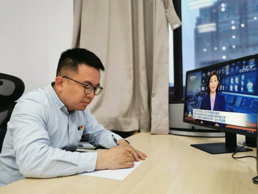 此时此刻,我的内心无比激动。在中国共产主义青年团建团100周年之际,在人民的大学面对面聆听人民领袖习近平总书记对青年的谆谆教诲,是对我们青年学子最大的鼓励。我曾以驻村第一书记的身份,亲身参与了习近平总书记亲自指挥的脱贫攻坚战,作为五级书记抓扶贫体系下最基础的一级,有机会在总书记考察母校之际参加座谈会,我万分荣幸。总书记的重要讲话精神更让我倍感振奋、备受鼓舞。作为当代青年,应当牢记习近平总书记的教诲,“立志民族复兴,不负韶华,不负时代,不负人民,在青春的赛道上奋力奔跑,争取跑出当代青年的最好成绩”。具体到个人,作为一名博士研究生,我主要研究减贫和发展经济学,希望能够结合自己在基层锻炼期间的思考和发现,以学术化的语言,向世界传播“中国之制”、“中国之治”和“中国之理”。