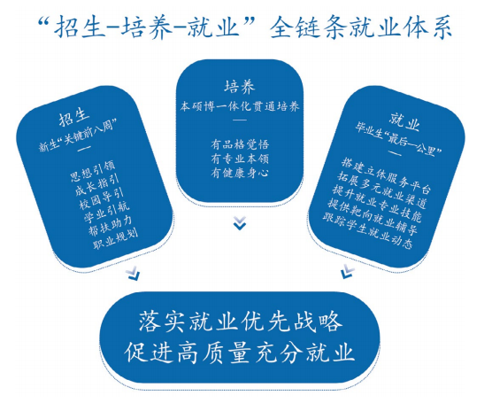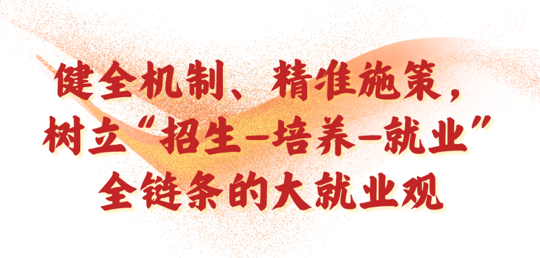 进一步完善“招生-培养-就业”全链条、一体化联动机制。针对新生群体特点,把握关键节点,持续实施新生“关键前八周”。深化人才培养体制机制综合改革,全方位提升学生专业本领,提升学生就业核心竞争力。广泛开展毕业生“毕业就业最后一公里”工作,多渠道开展职业生涯规划教育和就业指导服务,促进实现高质量充分就业。