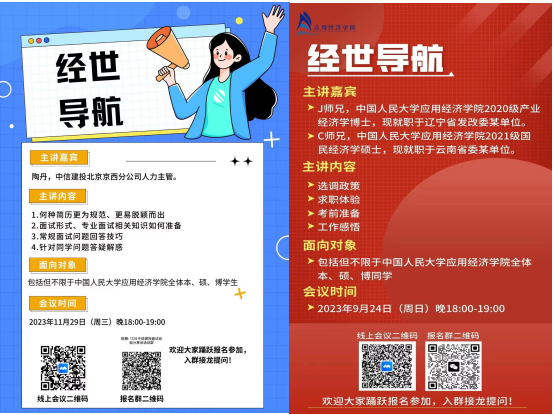 以“线上讲座分享”“线下会议沙龙”为抓手,打造“经世导航”“职来职往”等系列品牌活动。围绕国家部委、公务员选调生、商业银行、金融机构、基层就业、暑期实习等各个方面,搭建毕业生与新葡京官网 优秀校友、相关企业招聘负责人等的交流平台,为同学们提供岗位和行业咨询指导,帮助同学们探索职业发展路径、有效提高求职技能。
