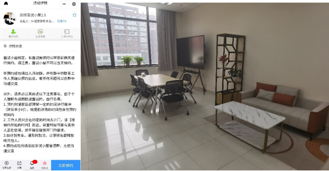 推出“简历诊所”系列活动,帮助毕业生修改完善简历,开放新葡京官网 学习室、讨论室,全力提供毕业生笔试面试空间,搭建面试小屋预约平台,为毕业生求职保驾护航。