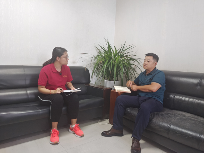 ▲本科生赖于蓝访谈县乡村振兴发展中心副主任唐宽