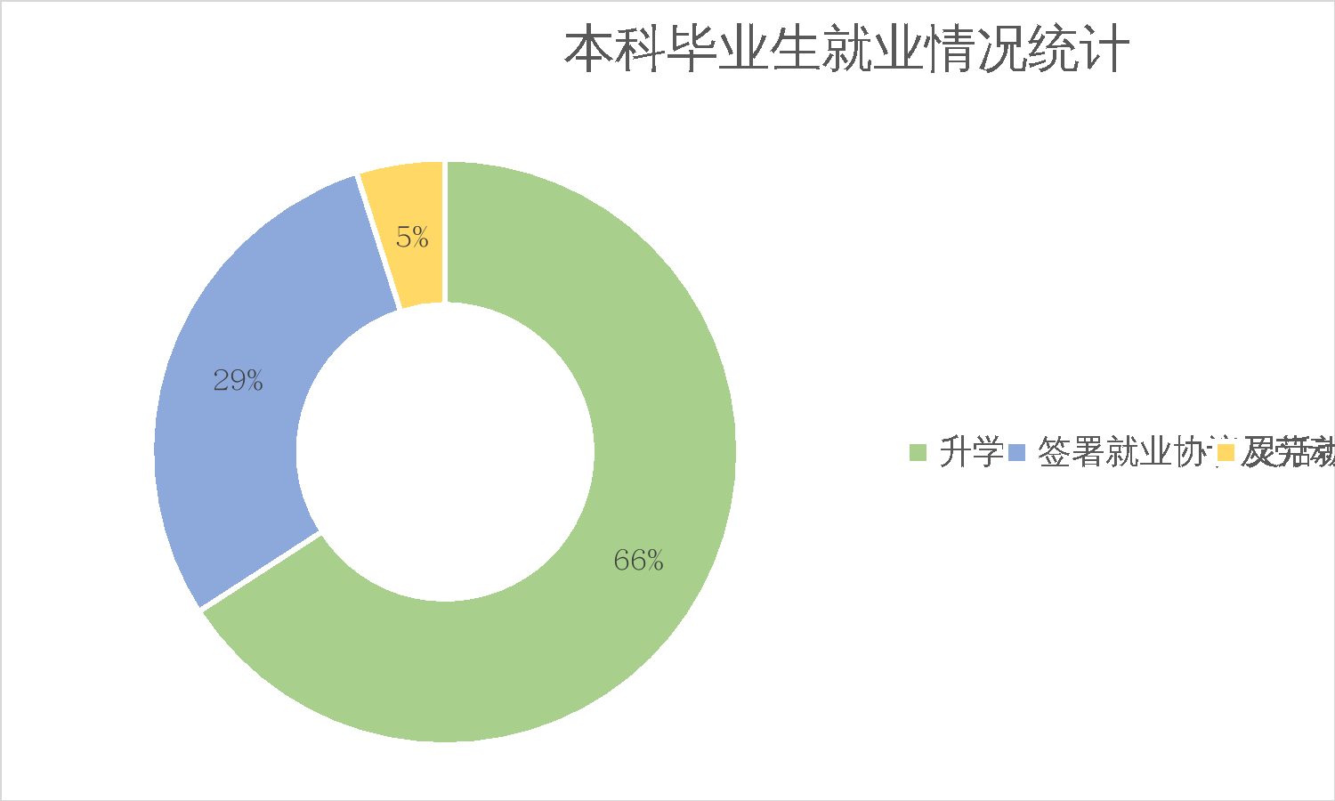 新葡京官网 2021届毕业生就业去向多样。本科就业毕业生中, 66%选择升学,29%签署了就业协议及劳动合同,5%选择灵活就业。