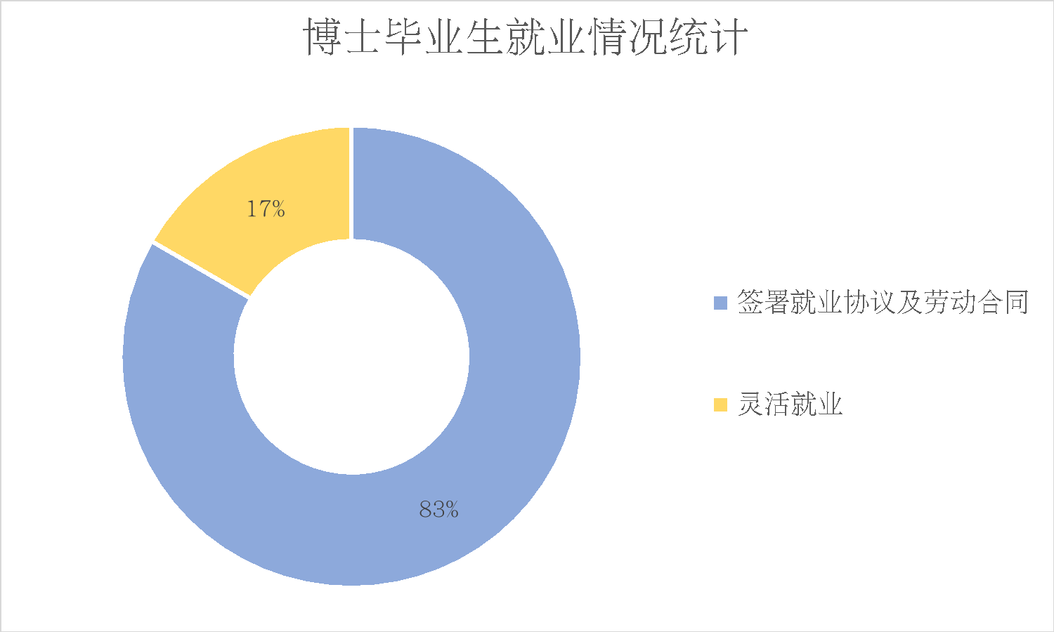 博士毕业生中,签署就业协议及劳动合同人数占比83%,灵活就业人数占比17%。