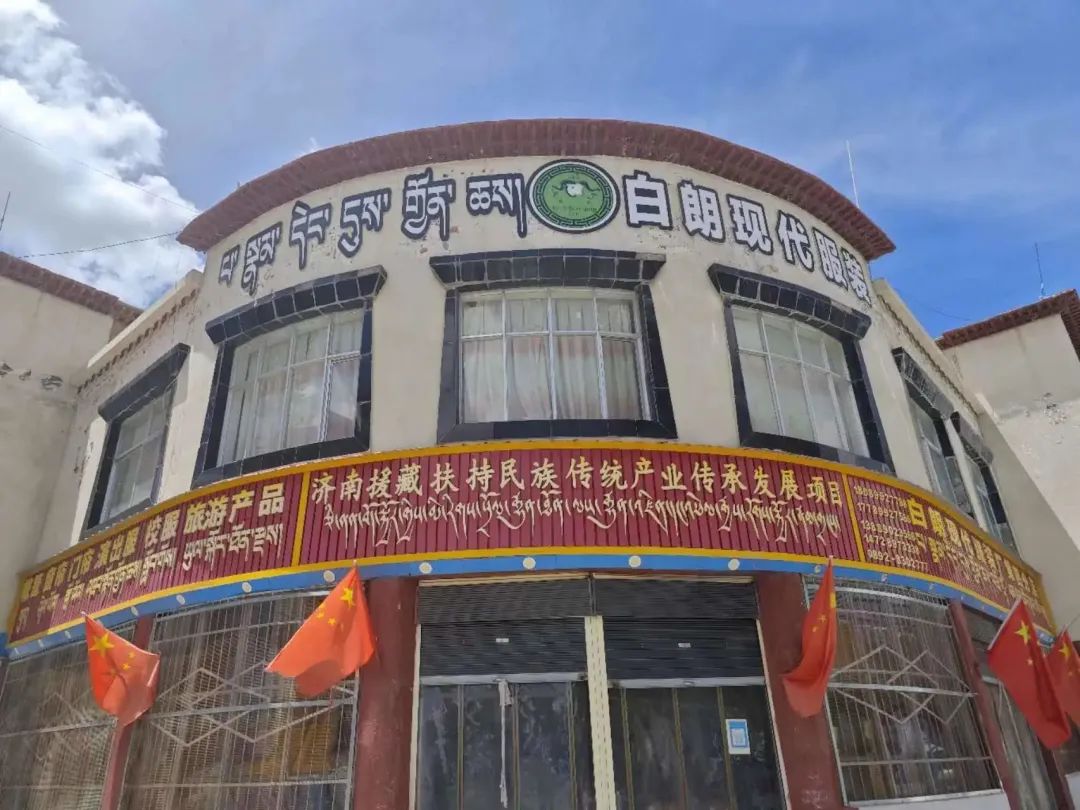 8月17日下午14点半,访谈团来到济南援藏扶持民族传统产业传承发展项目——白朗现代藏式服装厂进行调研。白朗现代藏式服装厂成立于2009年5月25日,在1995年成立的旺丹乡服装厂的基础上建设而成,注册资金为100万元。公司主要以民族手工业为基础,生产高中端藏式服装、藏帽、藏式帐篷、藏式装饰品、刺绣唐卡、羊毛加工等藏区民族特色产品。2016年以来,服装厂与时俱进,结合市场需求变化定制各类藏式演出服和中小学校服。目前,服装厂拥有资产总额达2500万余元,其中固定资产1900万元;建筑面积达3574平方米;有日喀则和白朗县城2个销售分店,分别有260平方米和60平方米。现有36名技术能手,其中固定职工18名;已贫困户就业18名,现均已成为缝纫能手,通过缝纫劳动改善了家庭生活条件,同时为2名未就业大学生提供了公司管理员的岗位。