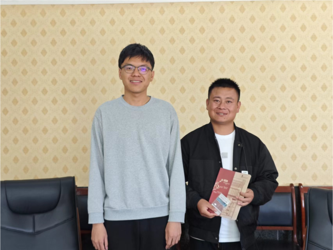 访谈团硕士生万沪宁赠送中国人民大学纪念卡片给脱贫户家幼儿