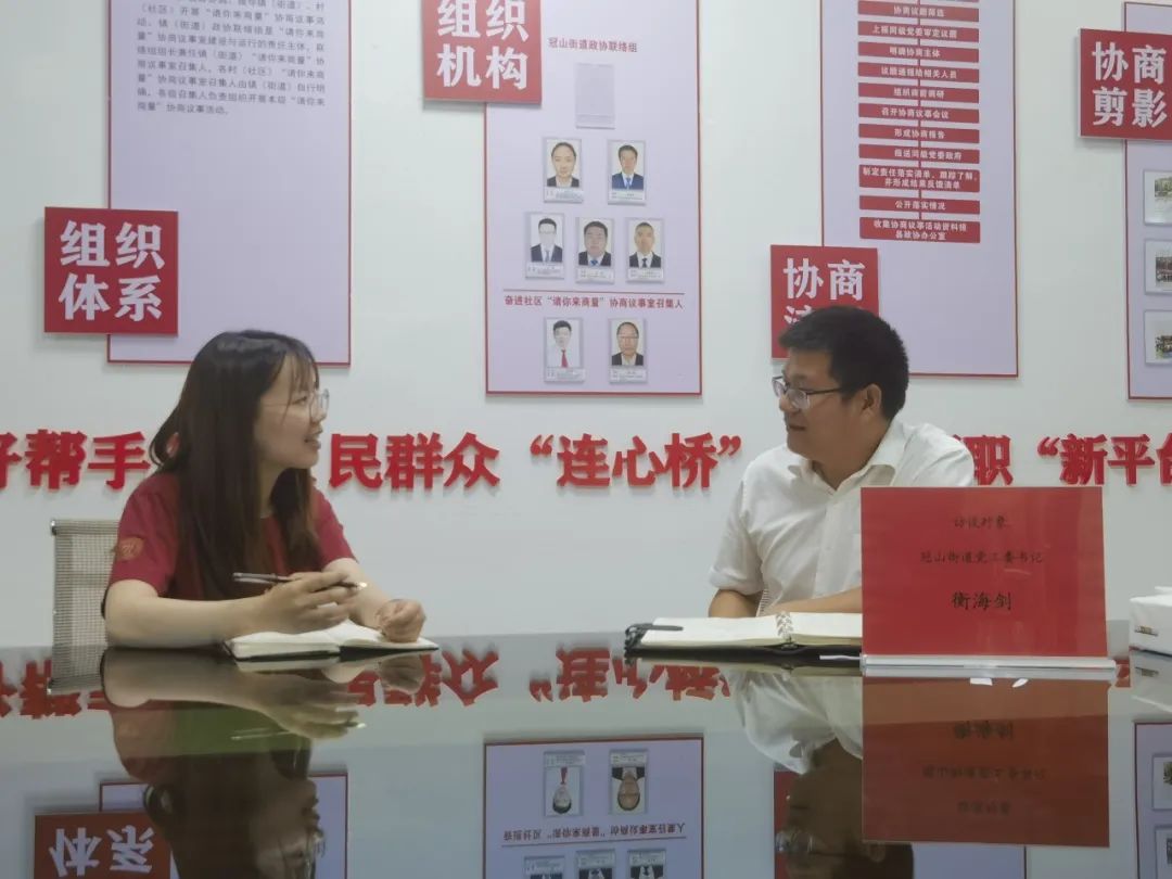 ▲调研团博士生王莹莹访谈冠山街道党工委书记衡海剑