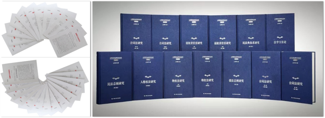 民法典参编人数居全国高校首位;首倡人格权独立成编、侵权责任独立成编被采纳,为十三届全国人大常委会作专题讲座,发表论文341篇,出版专著48本,承担重大项目29项,报送《编纂民法典参阅》98期,《民法学研究系列》呈现当代民法学研究最高水平,相关学术成果连续5次获教育部科研成果一等奖,推动中国民法学理论体系、话语体系重构。与司法部联合推出《民法典开讲》、受教育部委托举办公益培训,覆盖370所高校,多人获普法先进表彰;向最高人民法院等报送司法解释建议多项,推进规范性文件立改废释纂、典型案例、示范性判例研究,助力民法典实施。