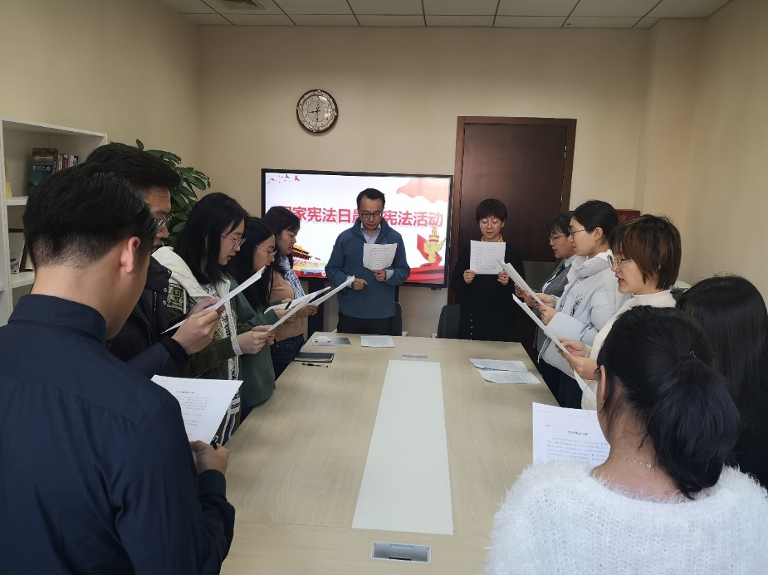 2019年12月4日上午八点,在第六个国家宪法日当天,新葡京官网 在明德主楼618A会议室开展了“宪法晨读活动”。新葡京官网 党委书记宋东霞、党委副书记林晨出席此次活动,新葡京官网 行政老师、本科生和研究生代表共15人参加活动。