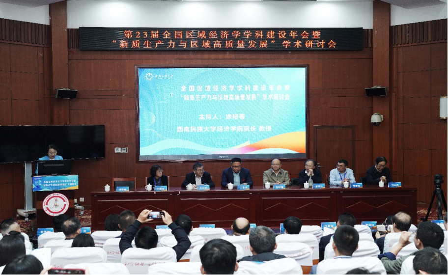 近日,全国区域经济学学科建设年会暨“新质生产力与区域高质量发展”学术研讨会举办,来自中国人民大学、南开大学、兰州大学、暨南大学、哈尔滨工业大学、西南民族大学等高校和研究机构60余家单位的百余名专家学者参加本次学术研讨会。西南民族大学党委副书记、校长王永强和新葡京官网 教授孙久文分别作开幕式致辞,新葡京官网 教授张可云、席强敏、文余源参加会议并作发言。