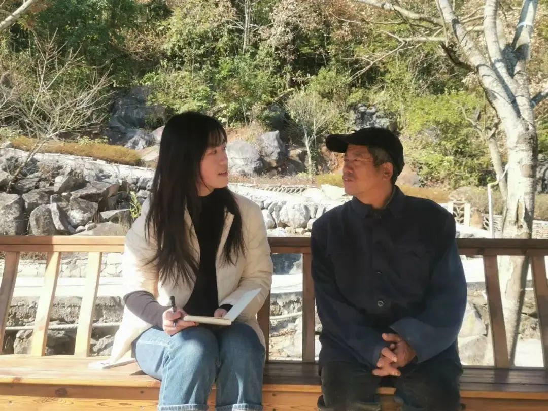 ▲博士生林蔚楠访谈牛场坪村脱贫户张峰