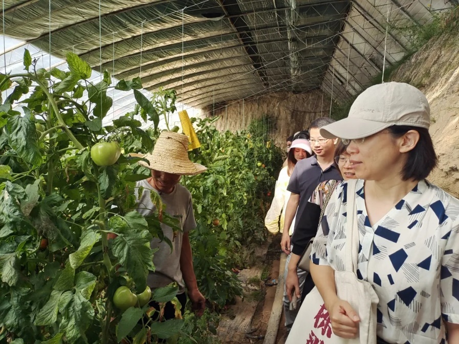 8月18日上午,访谈团到达天池店乡。首先前往调研芙蓉蔬菜加工基地,参观番茄种植大棚、淡水鱼养殖池、番茄贮藏、加工车间。