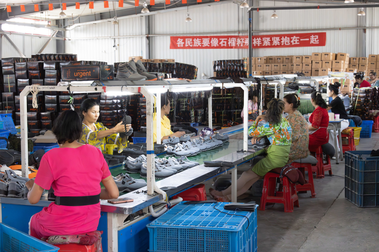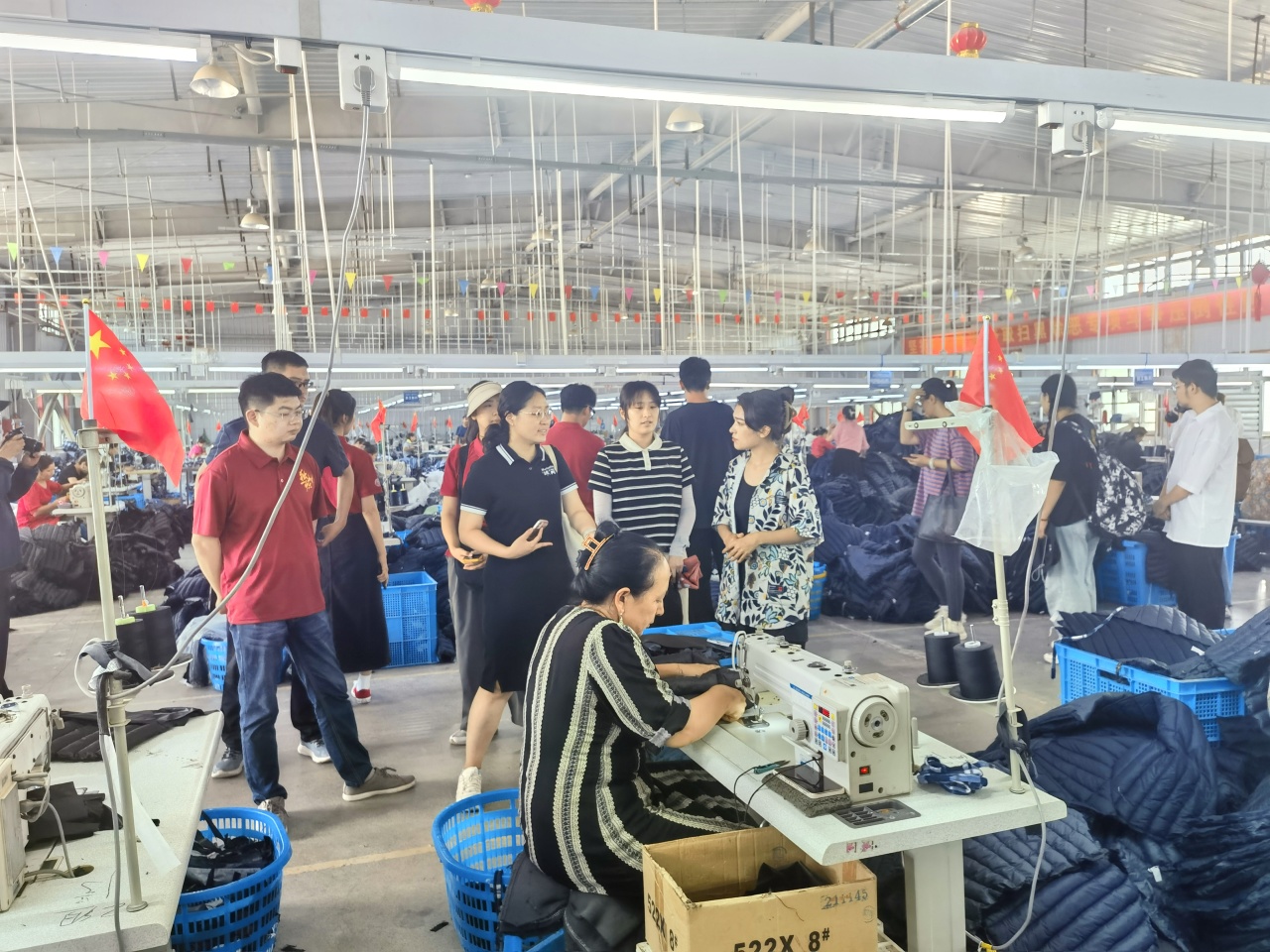 ▲在搬迁点的产业园内的制衣制鞋厂调研