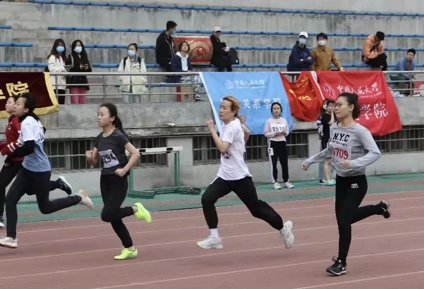 2021年4月10日,中国人民大学第六十一届田径运动会在世纪馆田径场举行。应经健儿们奋勇争先,以昂扬的姿态走上赛场。