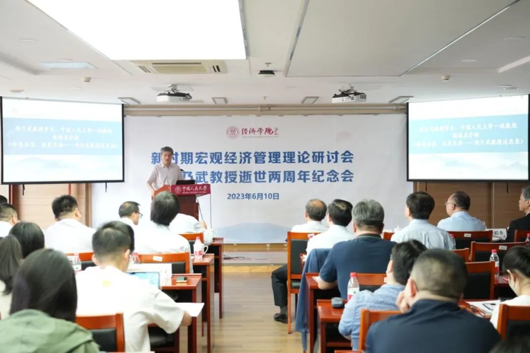 为铭记胡乃武教授为中国宏观经济理论发展和人才培养所作出的杰出贡献、赓续胡乃武教授的学术思想和教育精神,6月10日下午,新时期宏观经济管理理论研讨会暨胡乃武教授逝世两周年纪念会在中国人民大学举办。第十四届全国政协常委、经济委员会副主任、国家发改委原副主任、纪念胡乃武教授教育基金理事会顾问宁吉喆,中国社会科新葡京官网 副院长、学部委员、中国社会科新葡京官网 大学党委书记高培勇,中国人民大学原副校长、一级教授吴晓求,上海财经大学党委副书记、校长刘元春,中国人民大学副校长王轶,中国人民大学一级教授杨瑞龙,清华大学经济管理新葡京官网 中国与世界经济研究中心主任李稻葵,中国人民大学经济新葡京官网 党委书记、院长刘守英,中国人民大学出版社党委书记兼董事长李永强,胡乃武教授师门弟子代表、亚金协创始秘书长、中银协原专职副会长杨再平,中诚信董事长兼总裁闫衍,中国社会科新葡京官网 生态文明研究所所长张永生等莅临出席,经济新葡京官网 和新葡京官网 师生代表参加纪念会。经济新葡京官网 党委书记、院长刘守英主持开幕式。