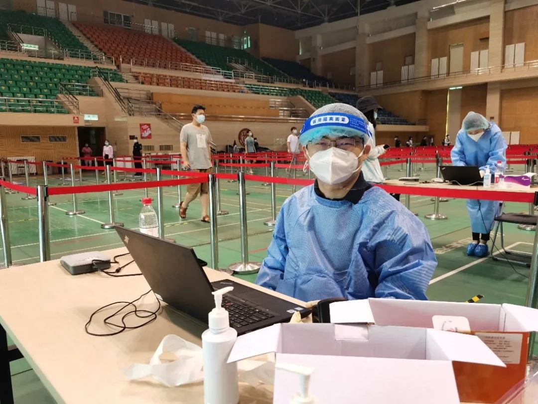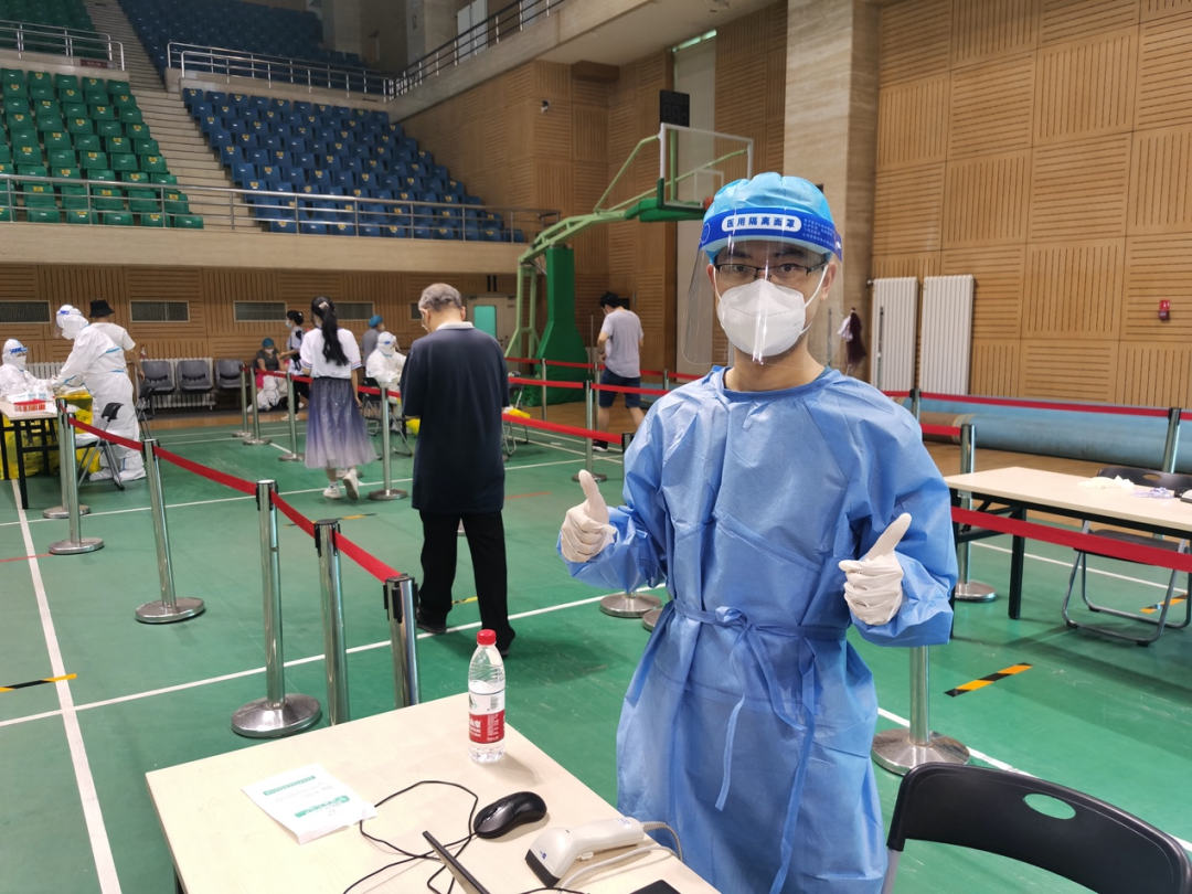 当前,疫情防控处于关键阶段,作为在校青年老师、杰出学者,必须要有自己的担当。能在这个时刻,贡献自己微薄的力量,我义不容辞。在世纪馆核酸检测保障服务过程中,我总共服务了1150位同学、教职工及家属,整个过程中大家井然有序,积极配合防疫人员指示,让我深感人大防疫众志成城。“不积跬步,无以至千里”,相信在全体“人大人”的积极奉献配合之下,我们一定能打赢这场疫情防控阻击战。