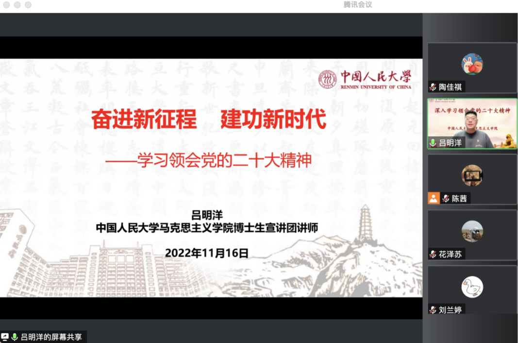 一年来,我们切实发挥“统学、领学、研学、联学、践学”一体联动机制功效,组织新葡京官网 各党支部、团支部、班集体第一时间学习党的二十大精神和习近平总书记考察中国人民大学时的重要讲话精神。通过党支部书记例会、专题党课、形势与政策课、中国式现代化大讲堂、主题党日、主题团日、主题班会等多种方式,采取跨支部、跨院系联合学习研讨、观看视频、交流讨论、结对联学、知识问答、实践参观等多种形式,层层宣讲、层层学习,深入学习习近平总书记在中国人民大学考察时重要讲话精神。新葡京官网 留学归国的党内外青年教师代表与学生代表集体学习《习近平经济思想学习纲要》照片入选国家“奋进新时代”主题成就展。