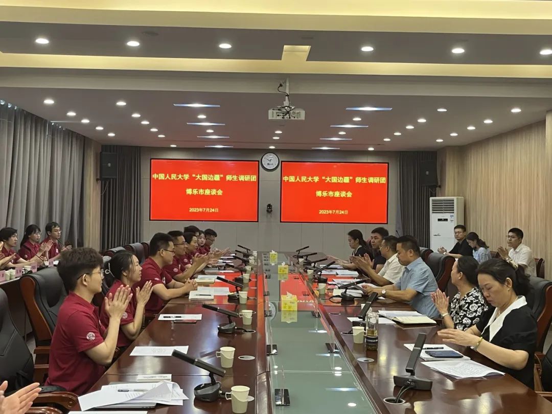 24日上午,在博乐市政府的热情欢迎和大力支持下,调研团一行来到市政府大楼与市里各部门分管领导召开“大国边疆”主题座谈会,会议开始由博乐市市委常委、副市长温荣同志致欢迎词,温副市长对“大国边疆”项目表示高度赞扬,并就博乐市发展情况进行简单介绍,随后新葡京官网 副教授苏立老师向温副市长及博乐市各部门领导介绍“大国边疆”项目和调研团一行此次调研目的,各部门领导就博乐市教育、医疗、财政、农业农村和统战工作进行全面介绍,随后参会师生就重点问题进行交流提问。通过此次座谈会,调研团一行对博乐市近年来的蓬勃发展有了全面、深入了解。