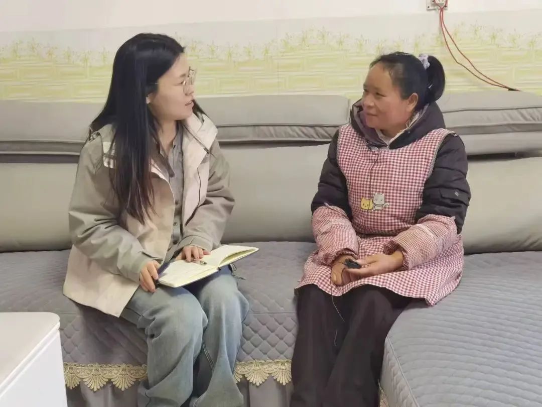 ▲博士生王忻彤访谈砚山县盘龙乡法土龙村脱贫户马绍芬