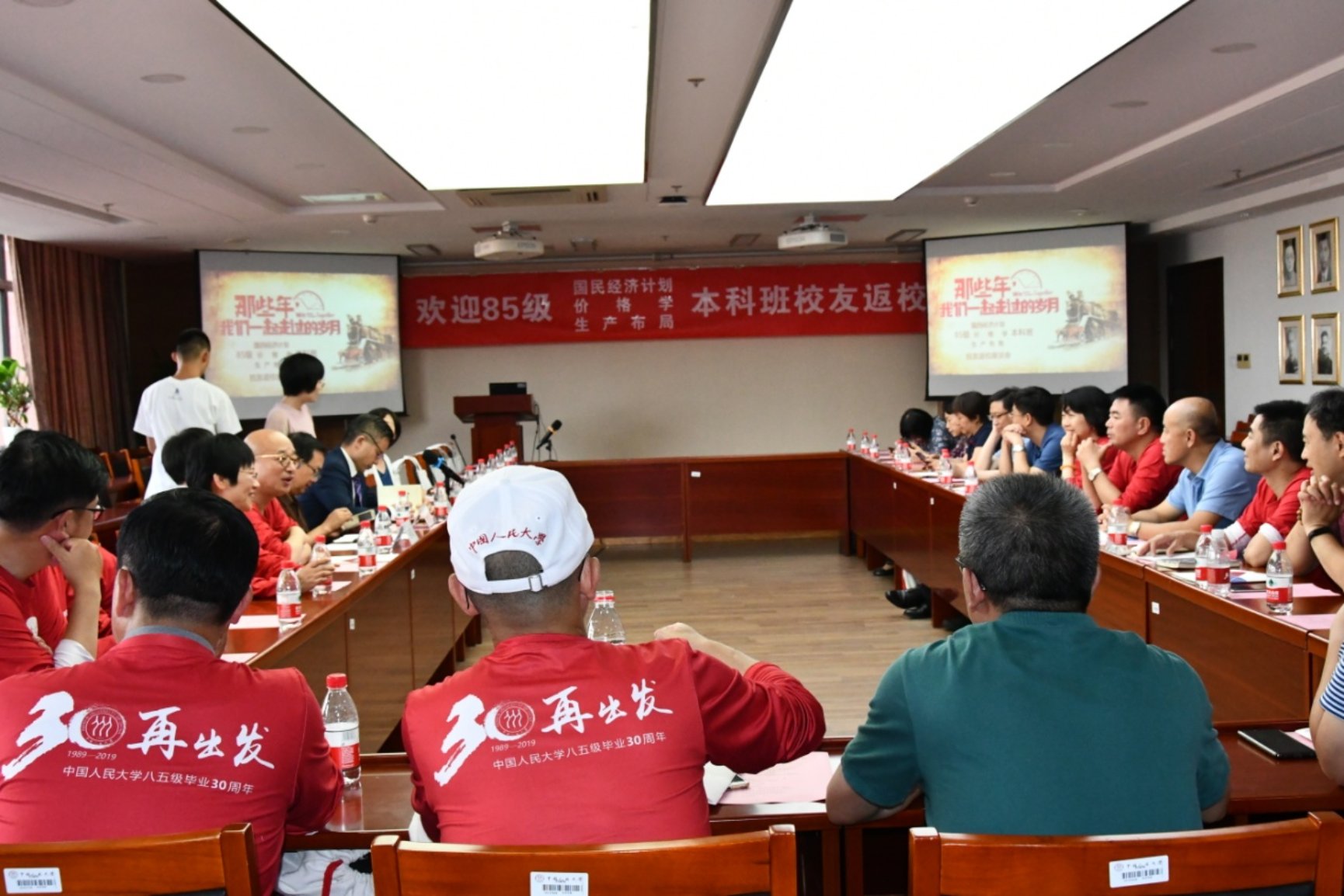在新中国成立70周年,中国人民大学82岁生日之际,2019年10月3日下午,新葡京官网 1985级国民经济计划、价格学、生产布局本科毕业30周年座谈会在明德主楼728举行,三十余位校友参加了座谈会。座谈会由新葡京官网 副院长黄隽主持,新葡京官网 院长、党委副书记郑新业教授,院党委副书记兼副院长张可云教授,孙久文教授、刘瑞教授参加了座谈会。