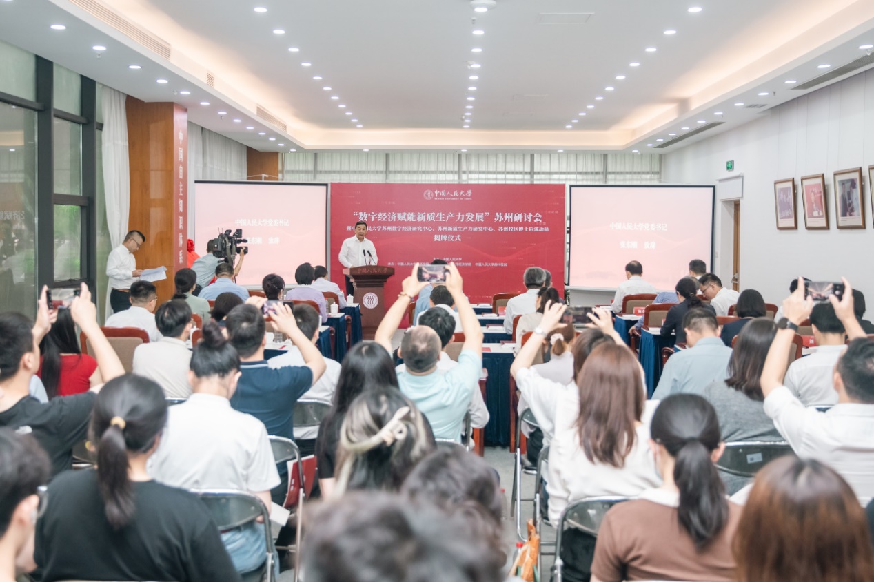 为积极响应即将召开的二十届三中全会,因地制宜加快发展新质生产力,6月21日,“数字经济赋能新质生产力发展”苏州研讨会暨中国人民大学苏州数字经济研究中心、苏州新质生产力研究中心、苏州校区博士后流动站揭牌仪式在中国人民大学苏州校区举办。