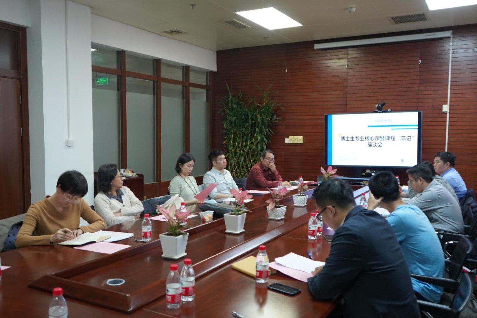 为进一步贯彻党的十九届六中全会精神、深化爱国主义教育与红色教育、深入推进习近平新时代中国特色社会主义思想“进教材、进课堂、进头脑”,新葡京官网 于12月6日中午在明德主楼623会议室召开博士生专业核心课暨课程“三进”座谈会,新葡京官网 党委书记宋东霞、副院长魏楚、各系所主任及各专业授课教师代表参加会议。