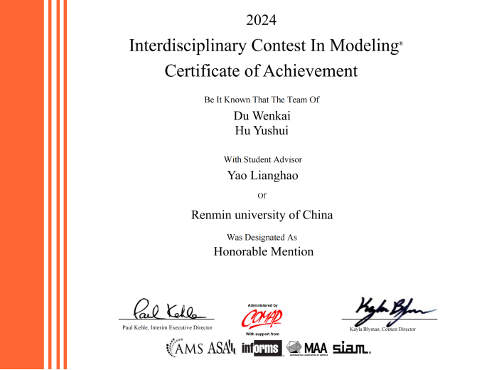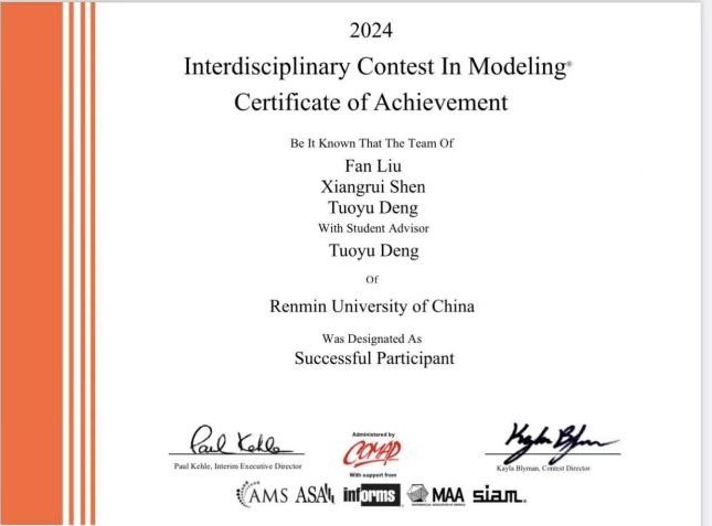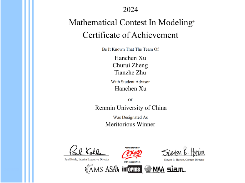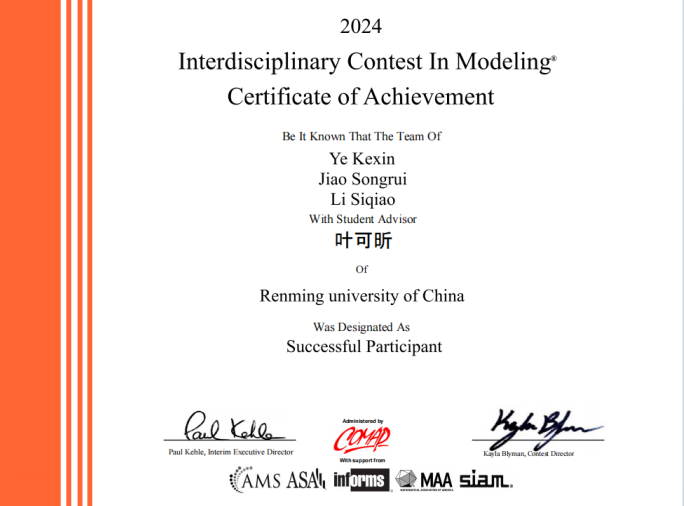 2024年度美国大学生数学建模竞赛获奖结果日前揭晓,新葡京官网 学子斩获佳绩,7支队伍10名同学分别荣获特等奖(Outstanding Winner)、国际一等奖(Meritorious Winner)、国际二等奖(Honorable Mention)和成功参赛奖(Successful Participant)!
