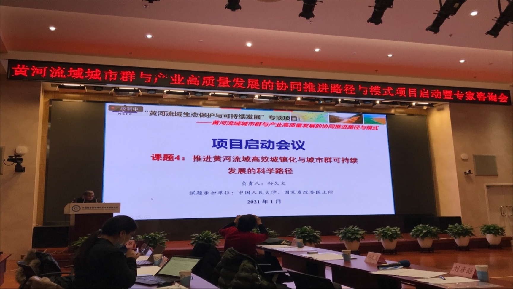 1月13日,国家自然科学基金委员会在中科院地理所召开“黄河流域生态保护与可持续发展”重大专项当中的管理科学部“黄河流域城市群与产业高质量发展的协同推进路径与模式”项目启动会。该项目由中科院地理资源所、北京师范大学、中国人民大学、兰州大学和国家发改委国土开发与地区经济研究所共同承担,中科院地理所为牵头单位。我院孙久文教授率领的课题组承担课题四:“推进黄河流域高效城镇化与城市群可持续发展的科学路径”研究。
