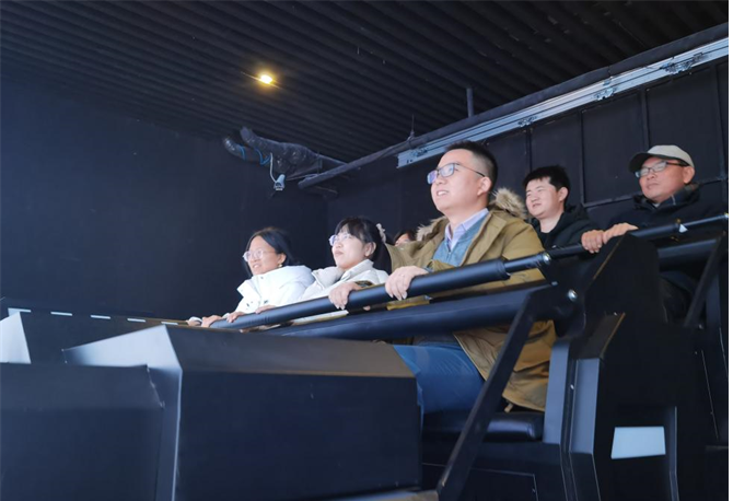 抵达利亚德集团后,调研团首先参观利亚德集团科技体验中心,深入了解利亚德集团发展脉络、核心业务及成就。利亚德集团由中国人民大学校友李军创办并任董事长兼总裁,作为全球视效科技领创者,其LED显示市场占有率已连续七年蝉联全球第一,并多次在国庆周年庆典、北京奥运会、冬奥会等重大国事活动中担纲视效重任。在产业布局上,利亚德集团形成了以LED智能显示产业为核心,文旅夜游、AI与空间云计算产业融合发展的全生态事业群。调研团充分体验了集团高清显示屏、VR影院等产品,实际感受利亚德集团在发展新质生产力方面的科技创新成果。