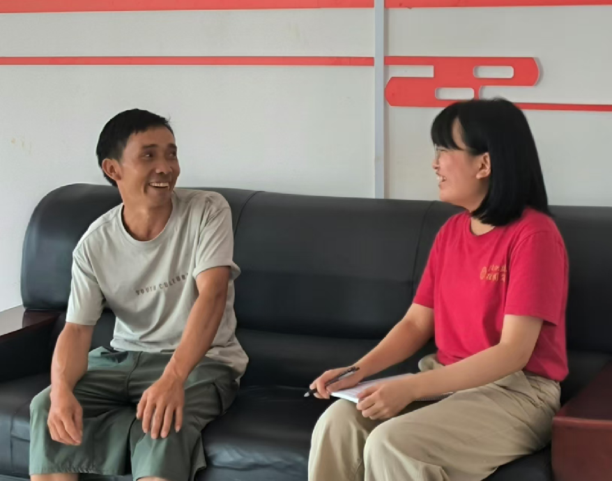 ▲中国人民大学新闻新葡京官网 本科生陈洁然访谈独山县百泉湖村党委书记岑天武