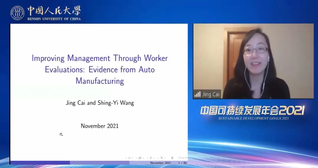 本会场第一篇报告来自马里兰大学副教授蔡婧,她以“Improving Management through Worker Evaluations: Evidence from Auto Manufacturing”为题进行专题报告。