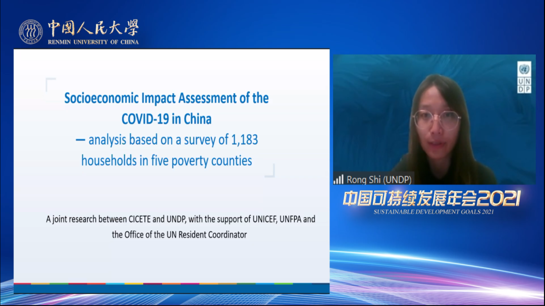 第四篇报告由联合国开发计划署(UNDP China)经济学家石蓉发表,文章主题为“Socioeconomic Impact Assessment of the COVID-19 Pandemic in China”。