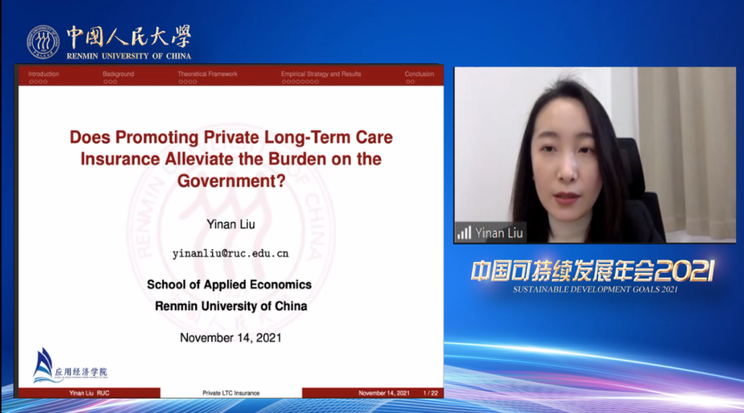 第四篇报告来自中国人民大学助理教授刘逸楠,题目为“Does Promoting Private Long-Term Care Insurance Alleviate the Burden on the Government”。