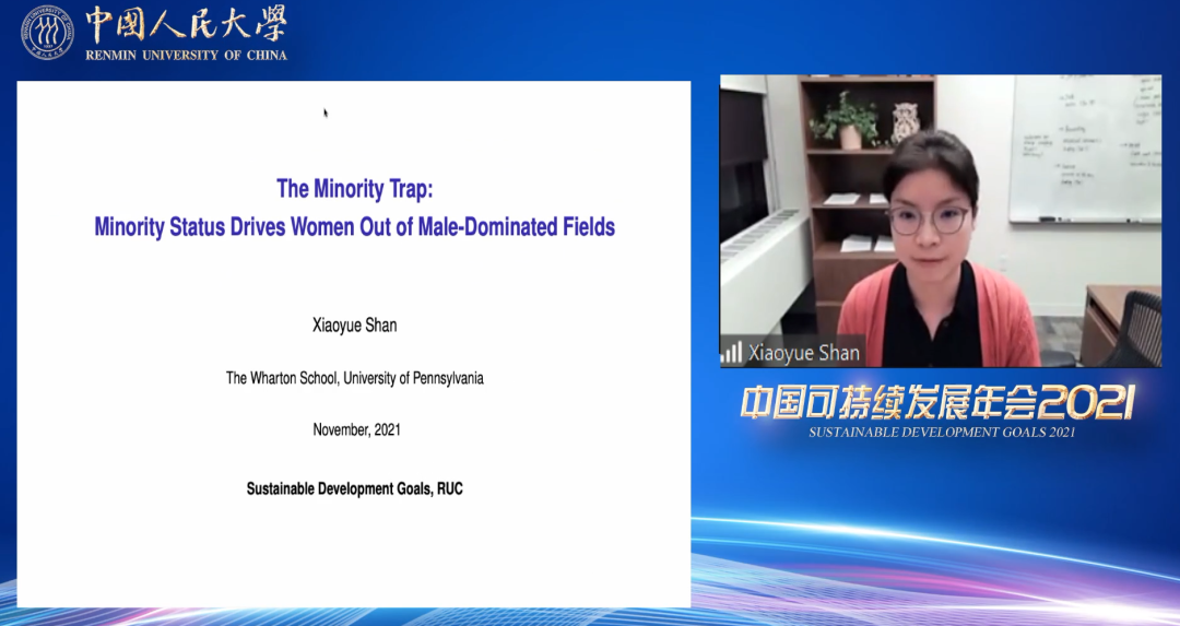 本会场第一篇报告来自宾夕法尼亚大学博士后单晓月,报告主题为“Does Minority Status Drive Women Out of Male-Dominated Fields?”。