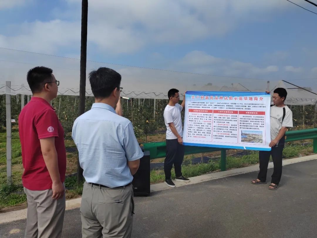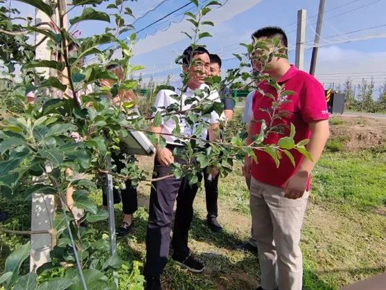 7月18日上午9点20分,访谈团驱车前往宜川县云岩镇辛户村,参观辛户村新优品种试验示范基地。作为宜川县“苹果第一村”,辛户村为破解果园老龄化、管理粗放化、劳动力流失严重等问题,大力实施果园提质增效工程,推进新品种改良2600亩,建成全县第一个新品种改良试验田。访谈团了解到,辛户村新优品种试验示范基地总面积50亩,矮化自根砧、矮化中间砧等重点探索的矮化密植品种占一半以上;引进新优品种17个,涵盖早熟、中熟、晚熟三大品类,栽种瑞香红等免套袋品种,探索苹果产园的自动化道路;栽植苗木均为特级苗。