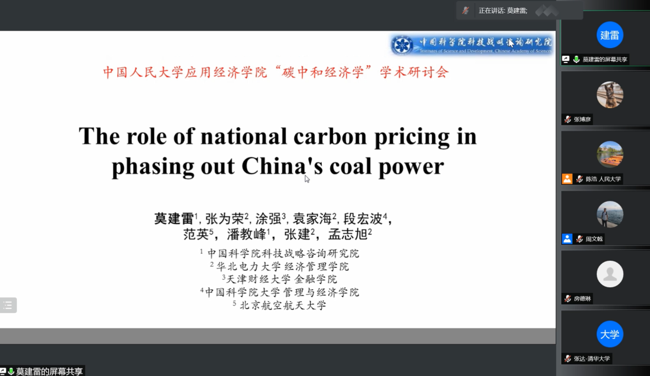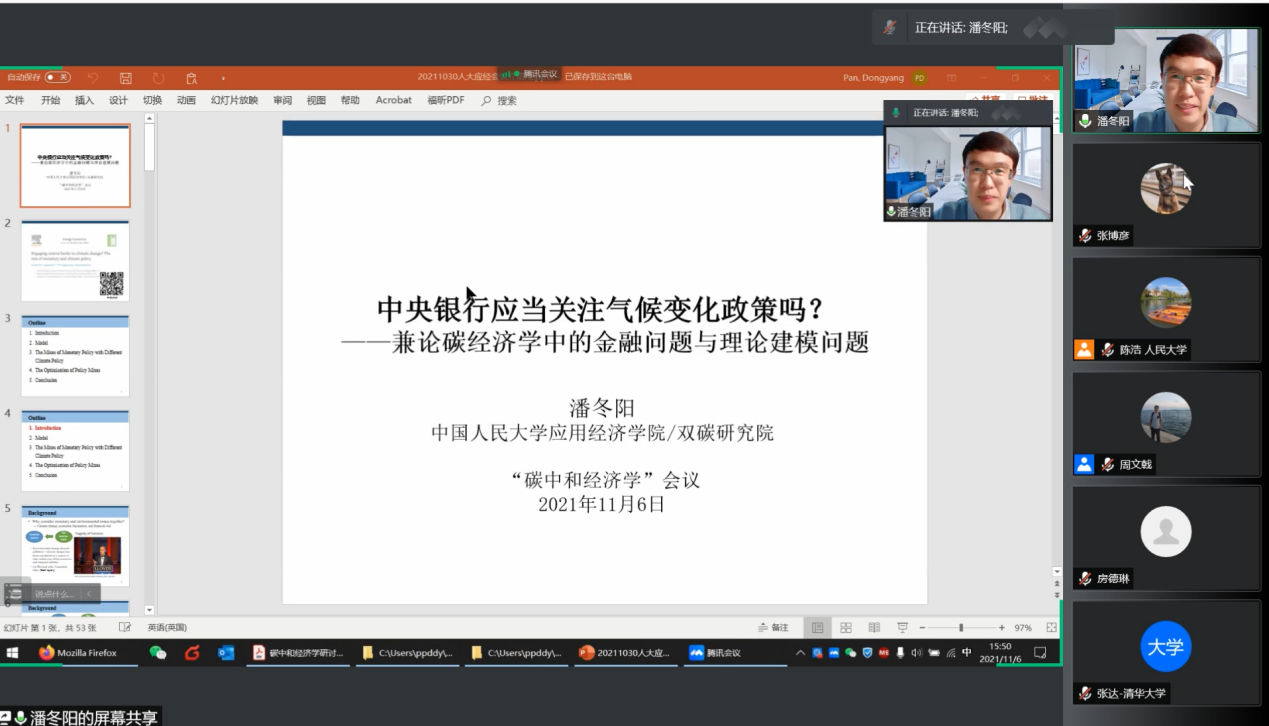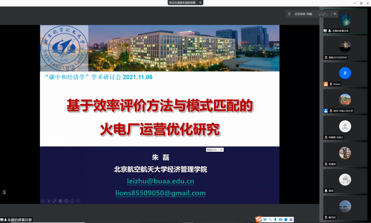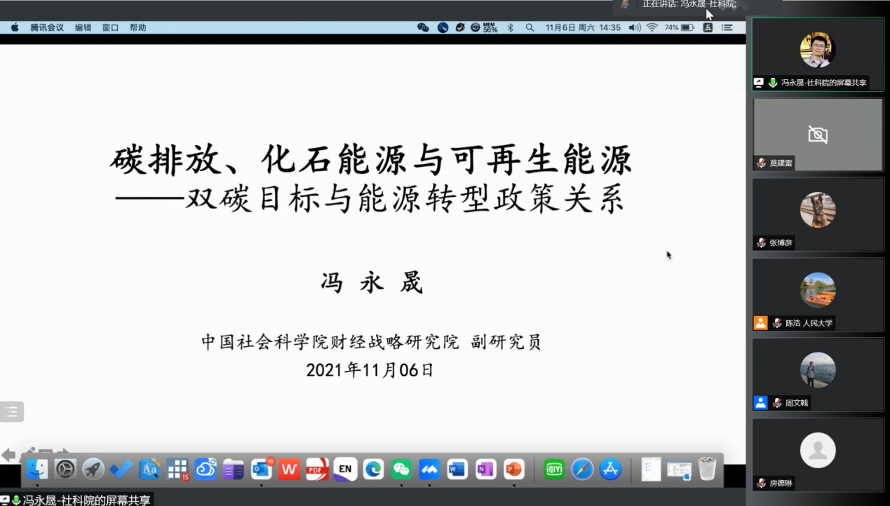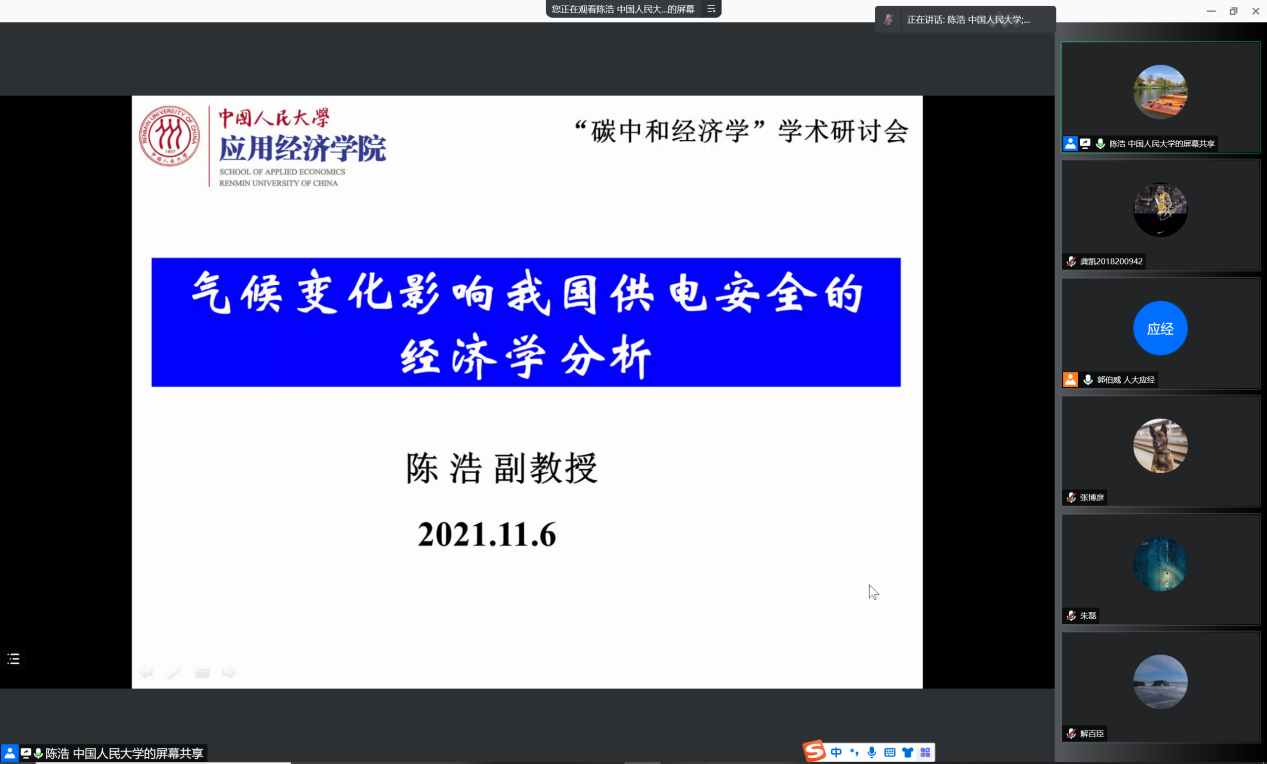 我国力争2030年前实现碳达峰、2060年前实现碳中和,这是党中央经过深思熟虑作出的重大战略决策。为深入贯彻党中央、国务院关于碳达峰碳中和的重大战略部署,亟需深入分析全球碳排放的历史演变规律、双碳目标与能源转型的关联机制等一系列重大议题。新葡京官网 和中国人民大学“碳中和”跨学科交叉平台于11月6日联合召开学术研讨会,本期主题为“碳中和经济学”,来自政府部门、高校和业界的二十余位专家学者参加会议。根据疫情防控要求,本次会议采用线上形式。
