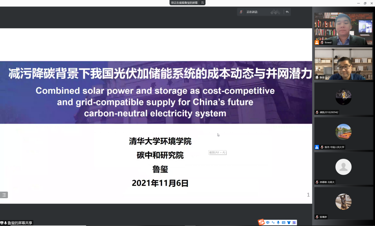 清华大学环境新葡京官网 长聘副教授鲁玺以《碳中和背景下我国光伏加储能系统成本动态与并网潜力》为主题进行展示。分别从时间动态性和空间差异性两个方面评估光伏发电潜力,不仅具有成本竞争力,而且与电网兼容,这对于中国未来的能源路径至关重要。
