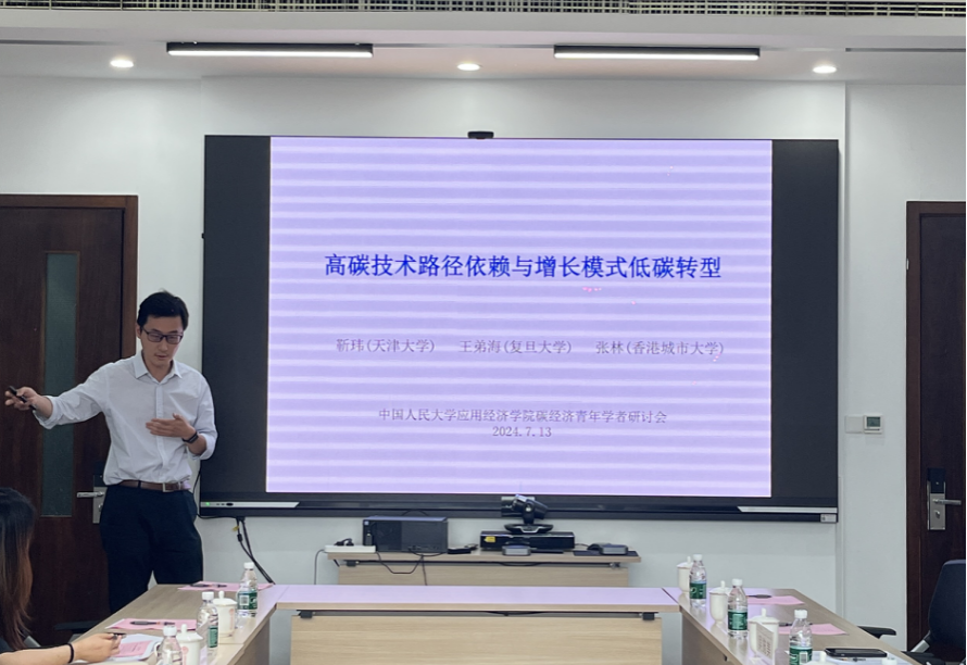 7月13日,新葡京官网 “碳经济青年学者研讨会”暨“发展新质生产力 推动高质量发展”高端研讨会(第7期)举办。中央财经大学国际经济与贸易新葡京官网 副院长段玉婉教授、天津大学马寅初经济新葡京官网 靳玮副教授、清华大学地球系统科学系同丹副教授、北京航空航天大学经济管理新葡京官网 谢杨副教授、对外经济贸易大学国际经济贸易新葡京官网 刘梦迪副教授、厦门大学中国能源政策研究院杜克锐副教授、湖南大学经济与贸易新葡京官网 吴施美副教授,新葡京官网 院长魏楚教授、副院长陈占明教授, “碳经济”团队陈浩、梅应丹、孙频等参加会议。会议由应用经济新葡京官网 能源经济系主任宋枫教授主持。