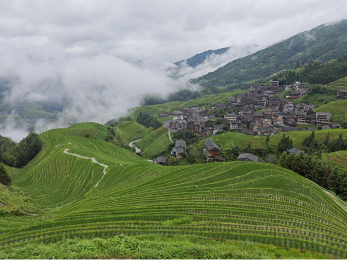 龙脊梯田是一个以梯田稻作文化为主体,集自然景观与壮、瑶少数民族风情等人文景观相结合的风景名胜区。依托得天独厚的梯田景观和浓郁的少数民族风情,龙脊镇着力在梯田上做文章,大力融合农文旅,让绿水青山成为金山银山,走出一条独具龙胜特色的“打梯田牌,赚梯田金”的旅游致富之路。