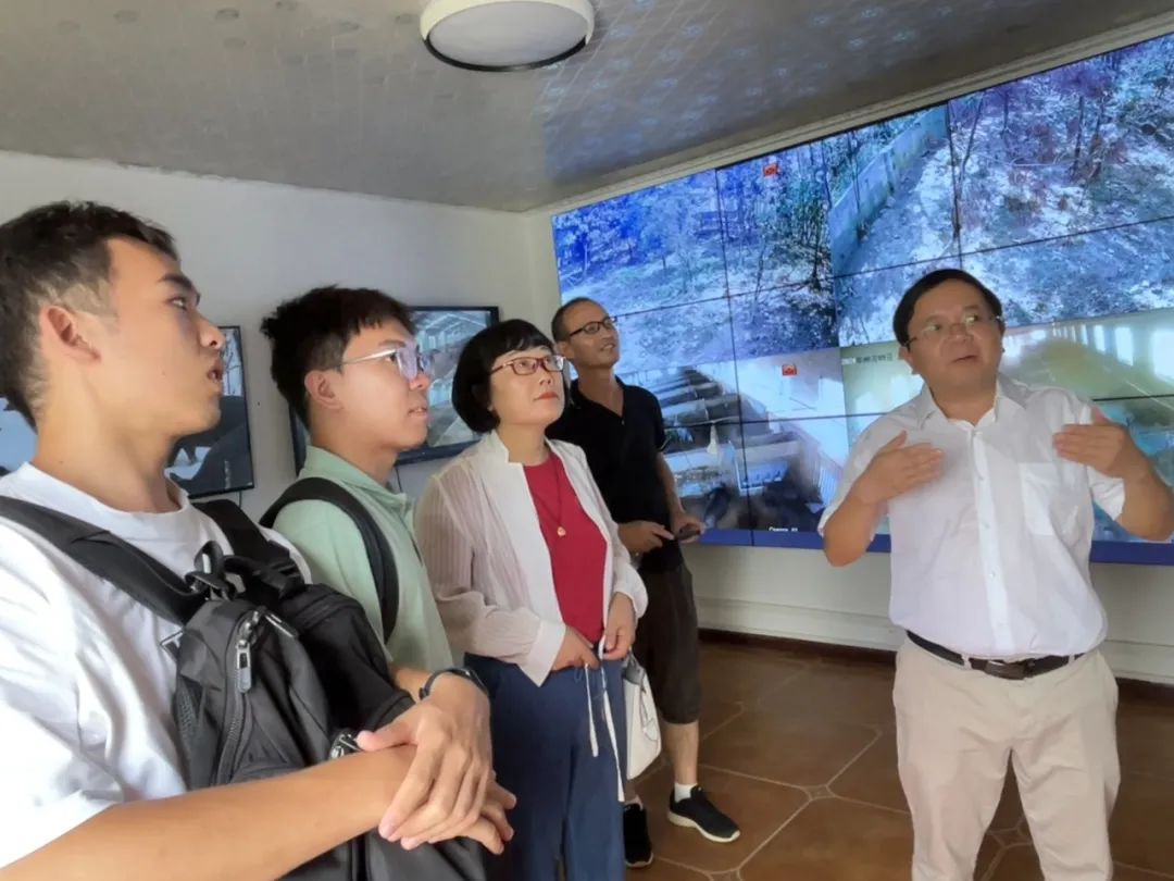 ▲王金涛在监控室为访谈团介绍黑猪养殖基本状况