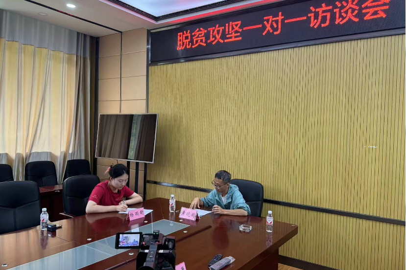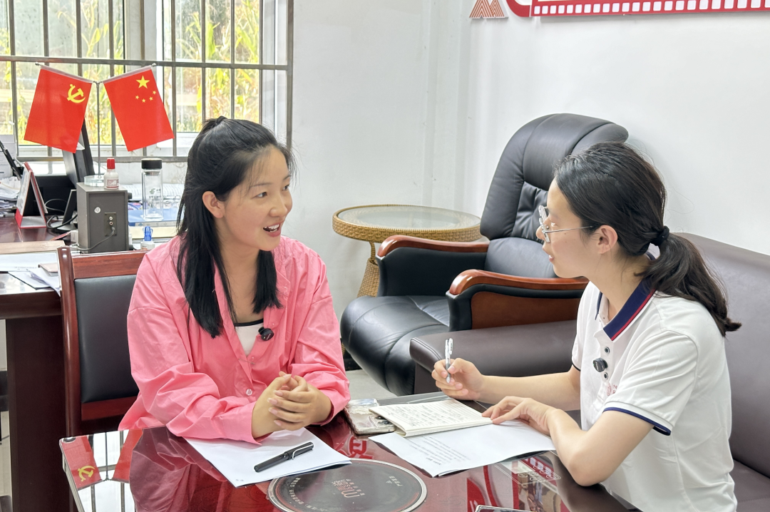 ▲硕士生杨雨昕访谈平坝区天龙镇打磨村驻村第一书记黄晓鹤