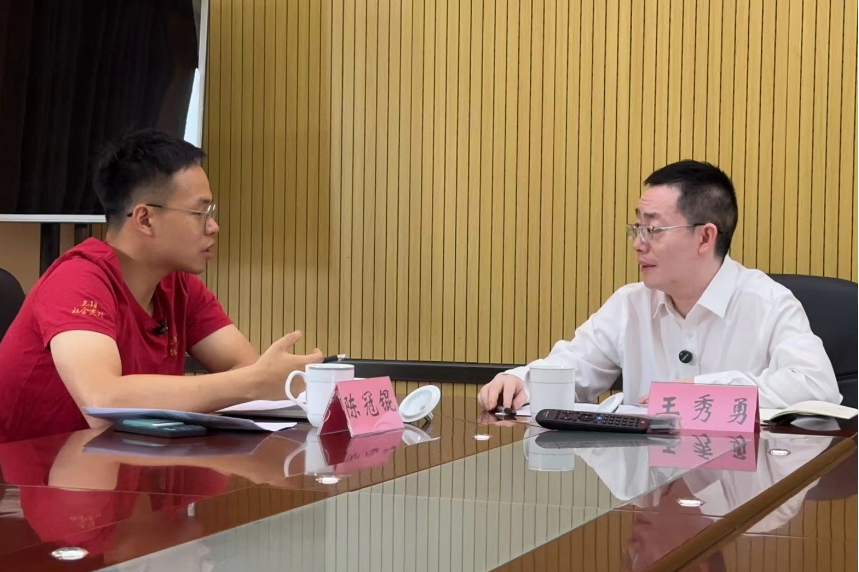 ▲博士生陈冠锟访谈平坝区农业农村局党组书记、局长邹永平